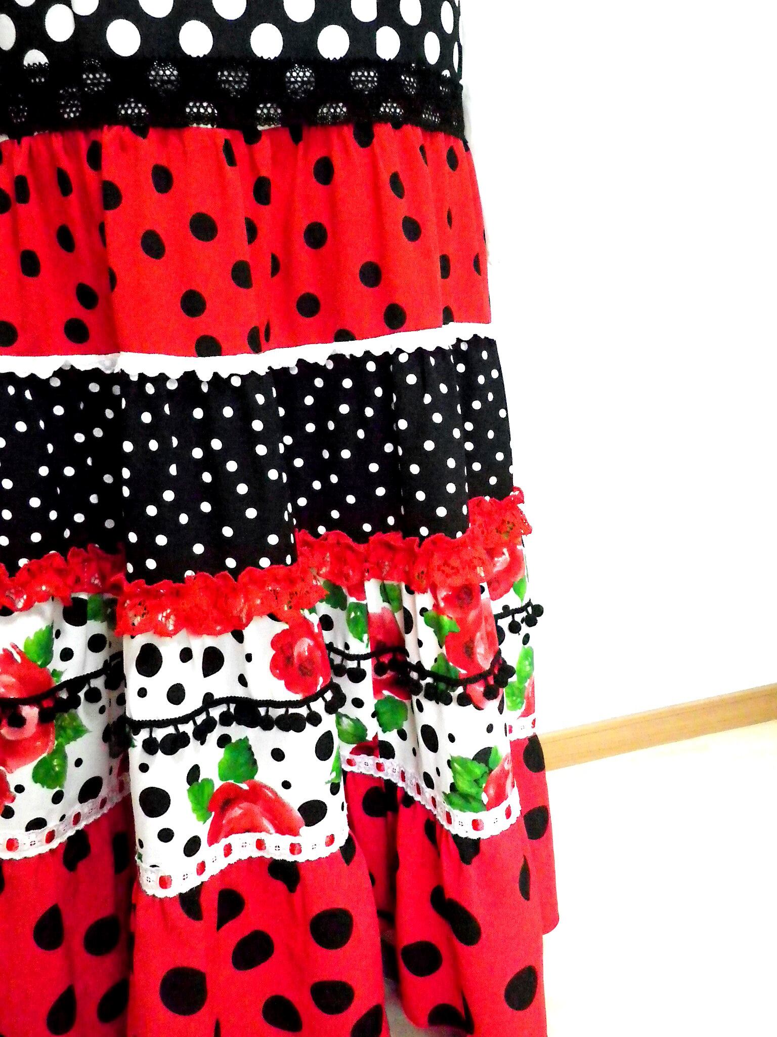 黒、白、赤を組み合わせたファルダは、合わせるブラウス次第で